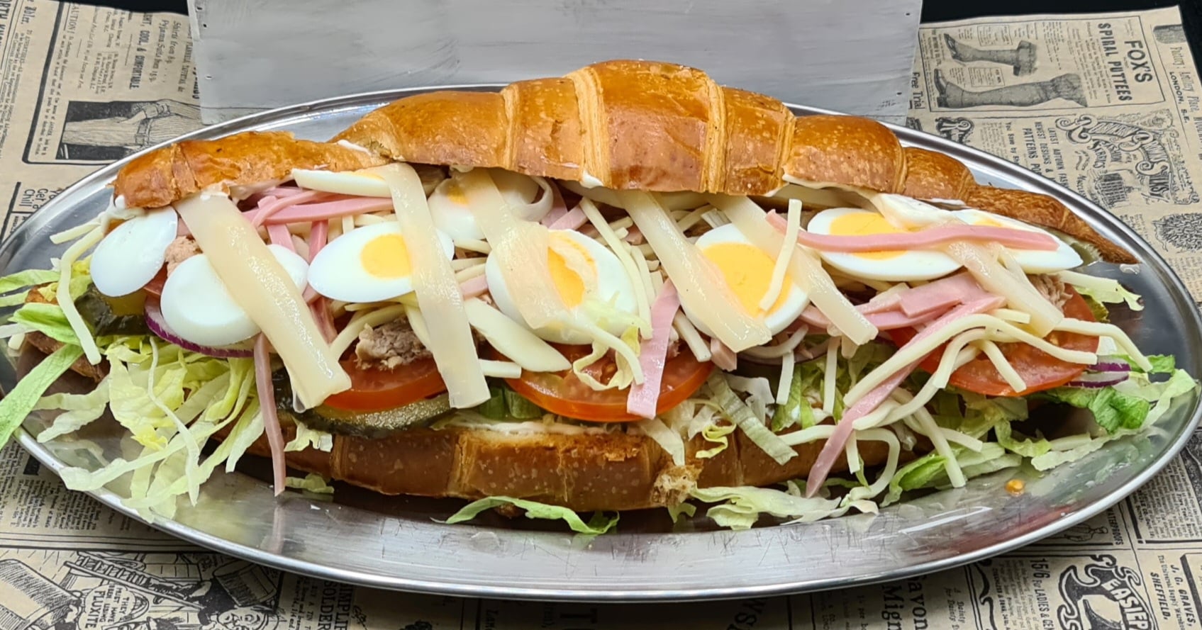 Lechuga, tomate, pepinillo, huevo duro, atún, cebolla morada, espárragos, jamón york y queso